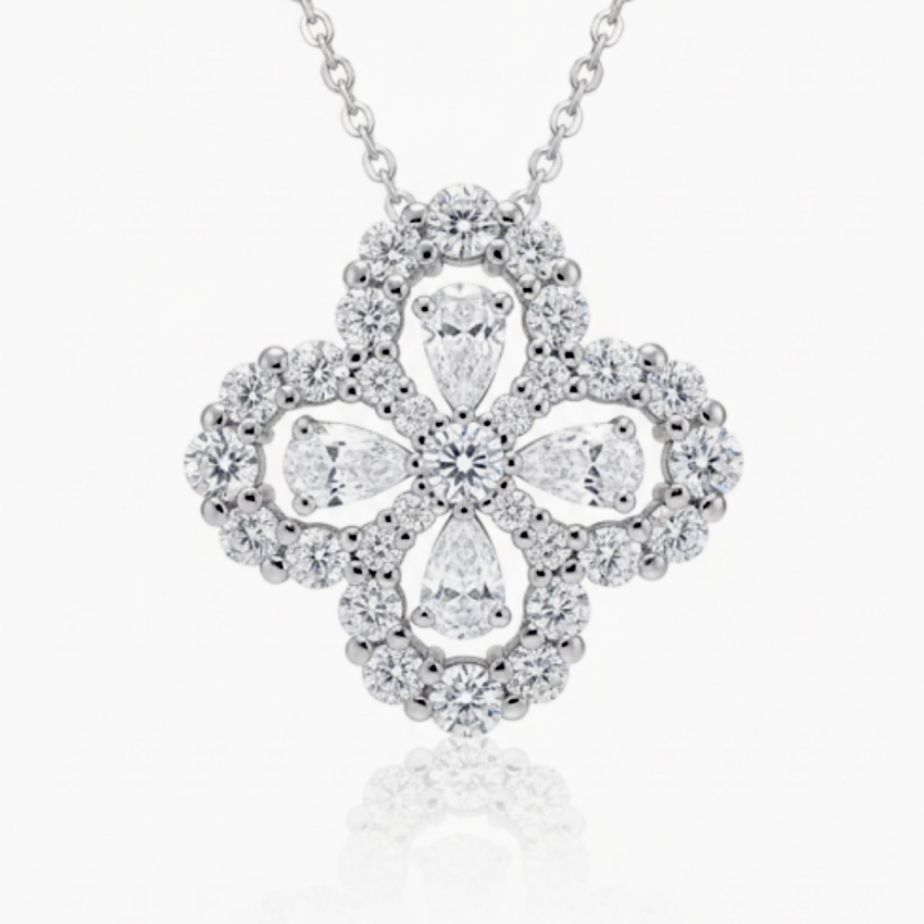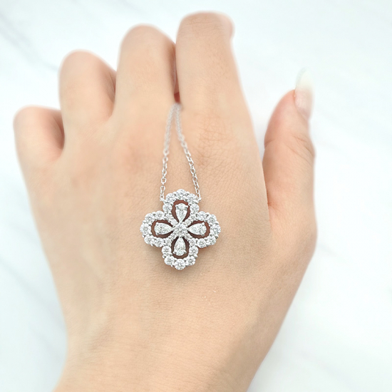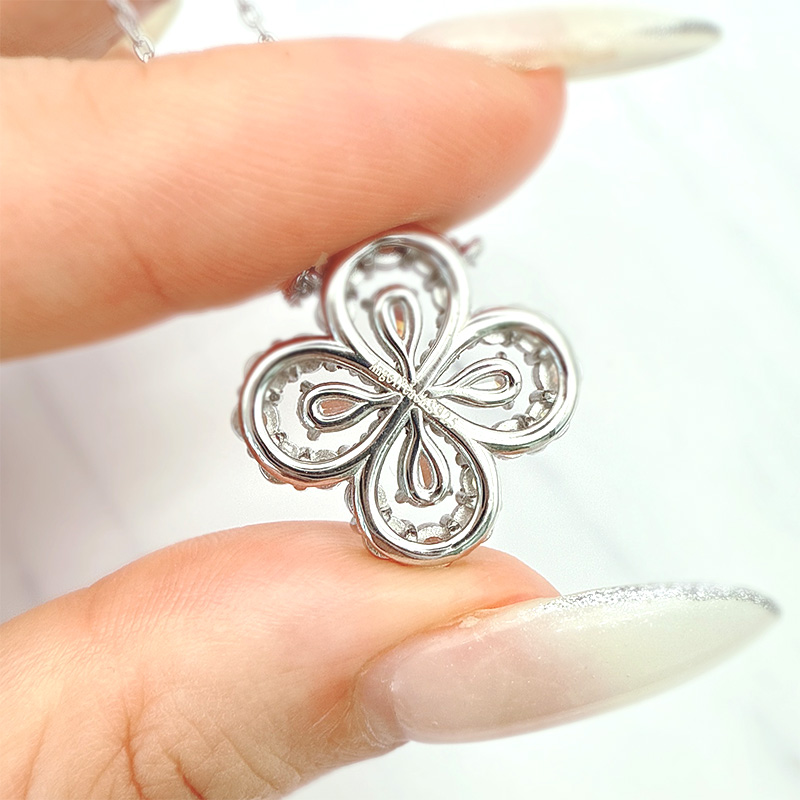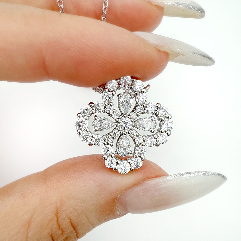★ 【人工ダイヤモンド】ループバイフラワーネックレス ループバイネックレス 人工ダイヤ 合成ダイヤ