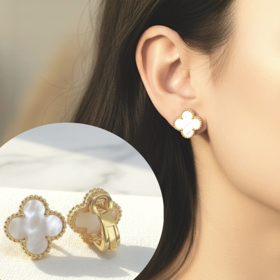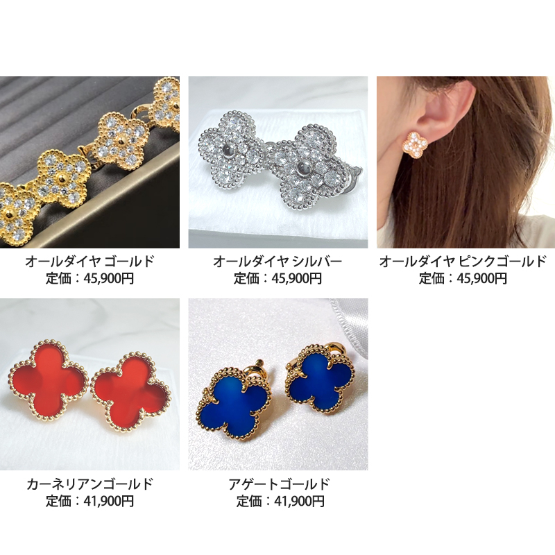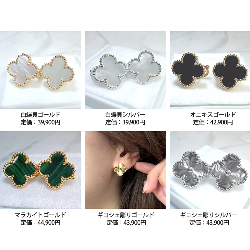 ○クローバーピアス クローバーイヤリング ヴィンテージタイプ アルハンブラタイプ クローバーピアス 白蝶貝 オニキス マラカイト カーネリアン