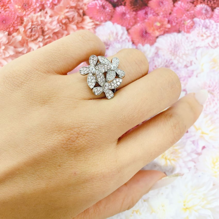 3つのバタフライが重なったおおぶりのゴージャスなリングです。 コーディネートのアクセントに!