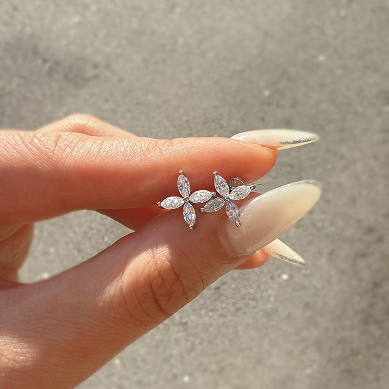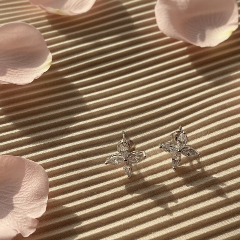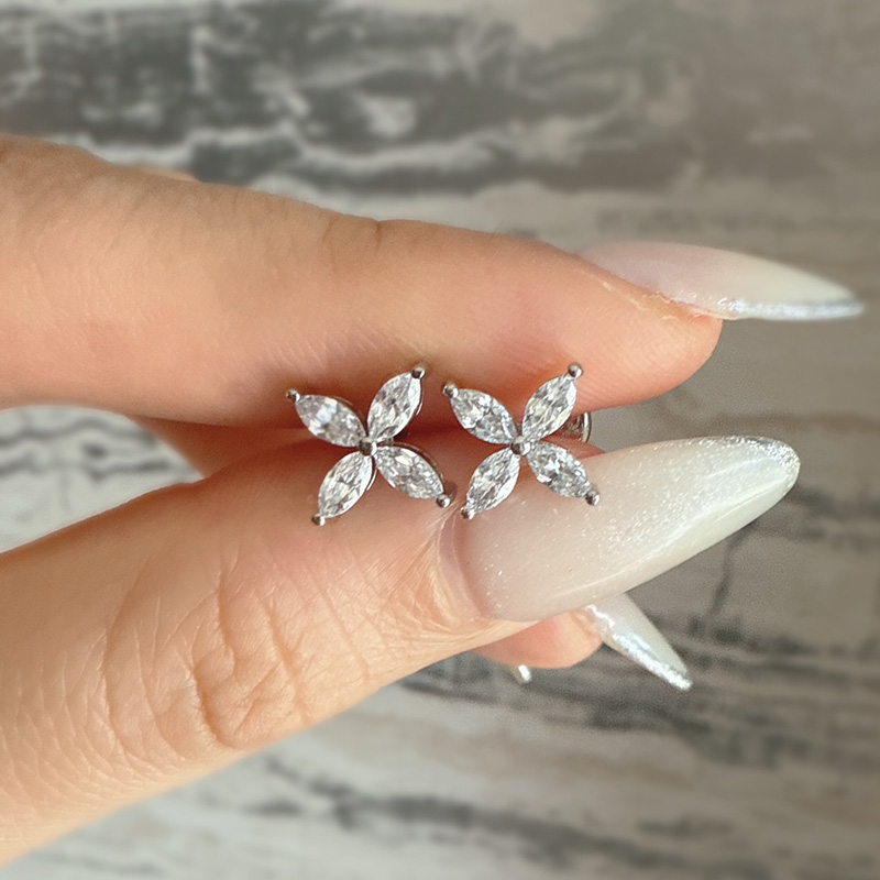 詳細 マーキスシェイプの人工ダイヤモンドで小花をイメージしたロマンティックなデザインです。