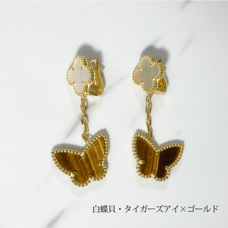 白蝶貝・タイガーズアイ(パピヨン)×ゴールド
