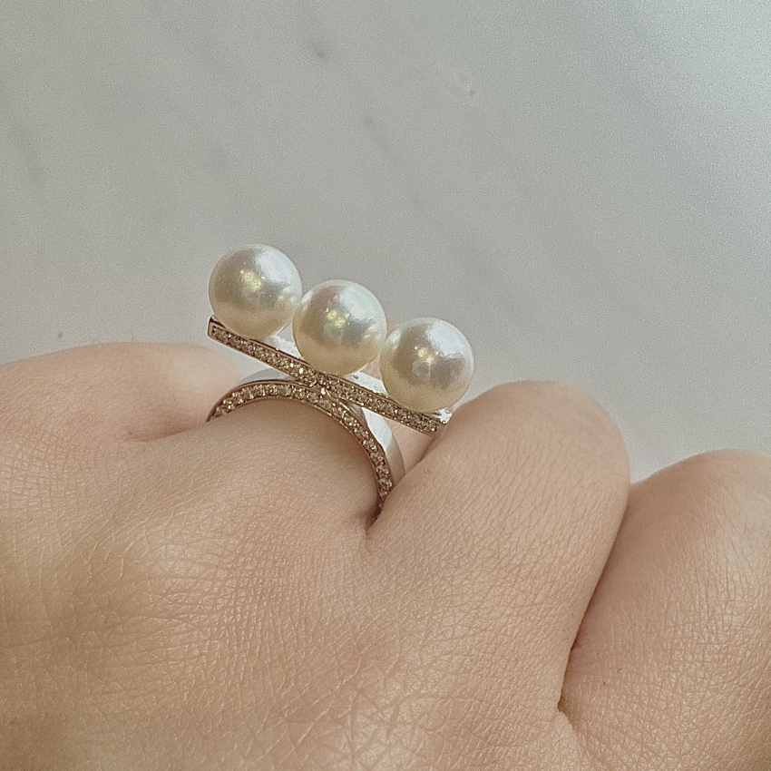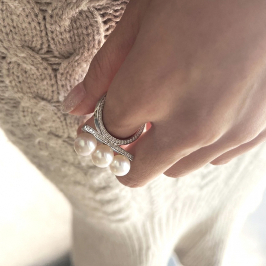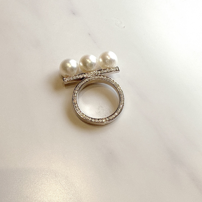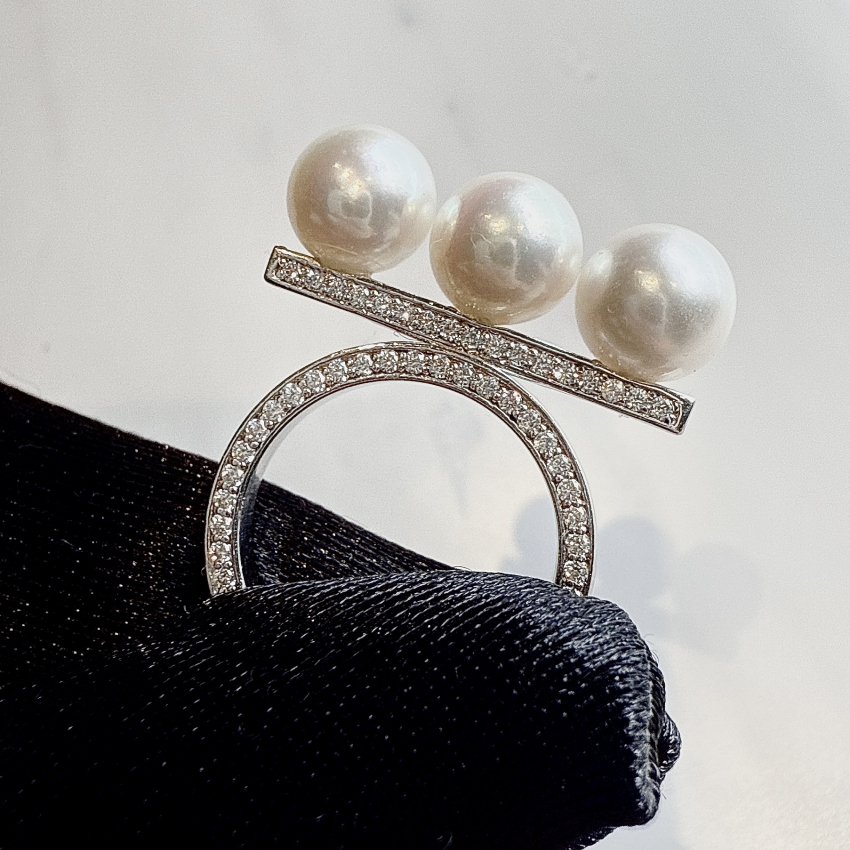 【アウトレット品】定価69,900円破格→ 人工ダイヤモンド バランス3Pパールパヴェリング 11号