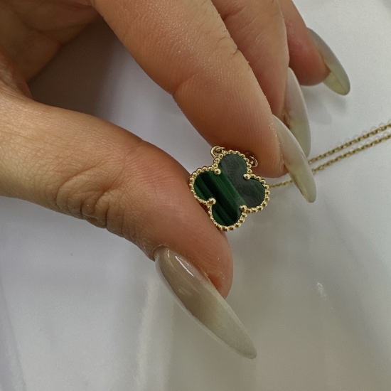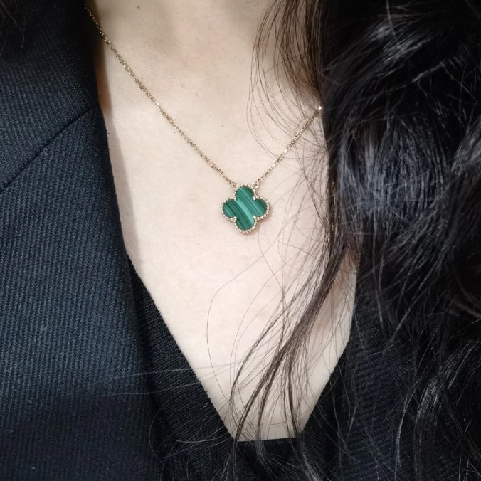 【アウトレット品】定価37,900円→破格 ヴィンテージクローバーネックレス マラカイト×ゴールドカラー マラカイトネックレス マラカイト ヴィンテージネックレス アルハンブラ