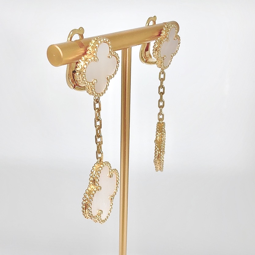 【アウトレット】 定価49,900円破格→ クローバー 2連ピアス(白蝶貝×ゴールドカラー)