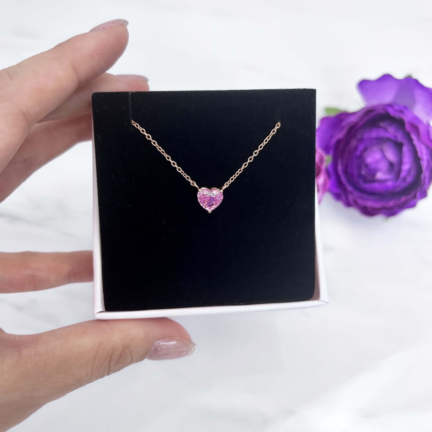 【WINTER SALE 20%OFF】ハートシェイプ アイスカットネックレス 1ct 相当 ファンシービビットピンク×ピンクゴールドカラー
