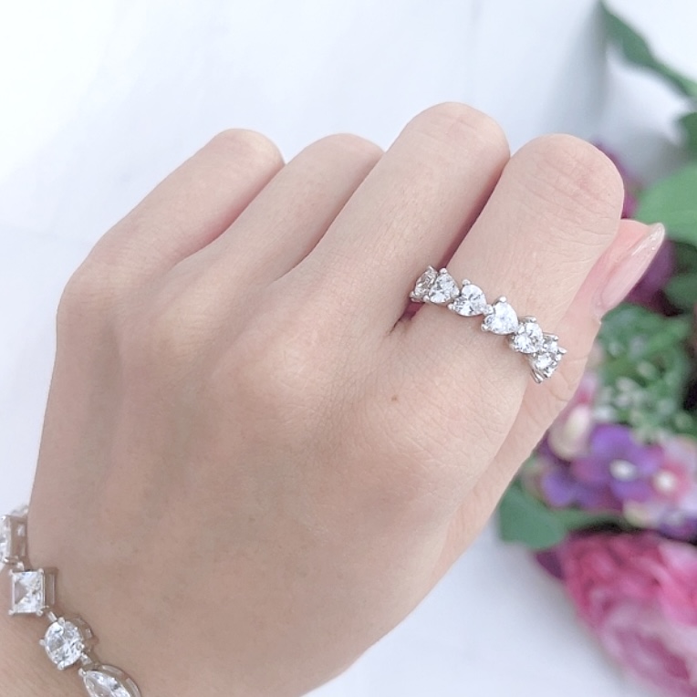 商品説明 ハート型のダイヤが連なったフルエタニティタイプのリング。キュートなモチーフで大人可愛いを演出!