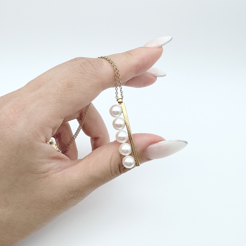5Pパールネックレス アコヤパール アコヤ真珠 ダイヤ無しタイプ ゴールドカラー 花珠クラス使用