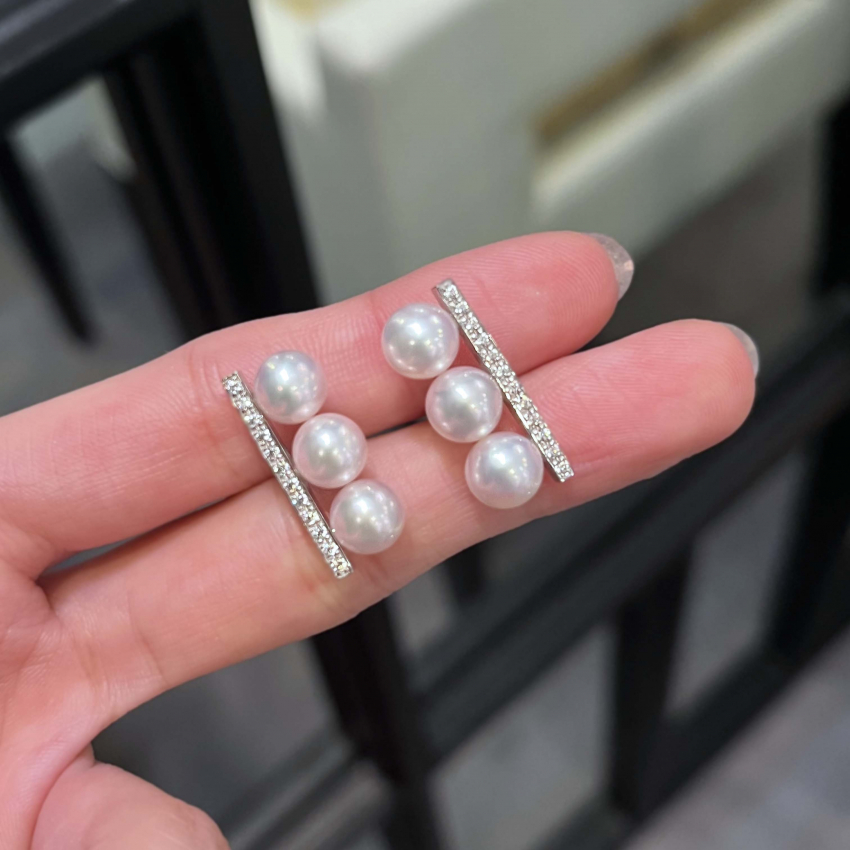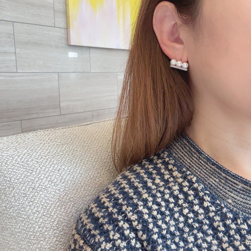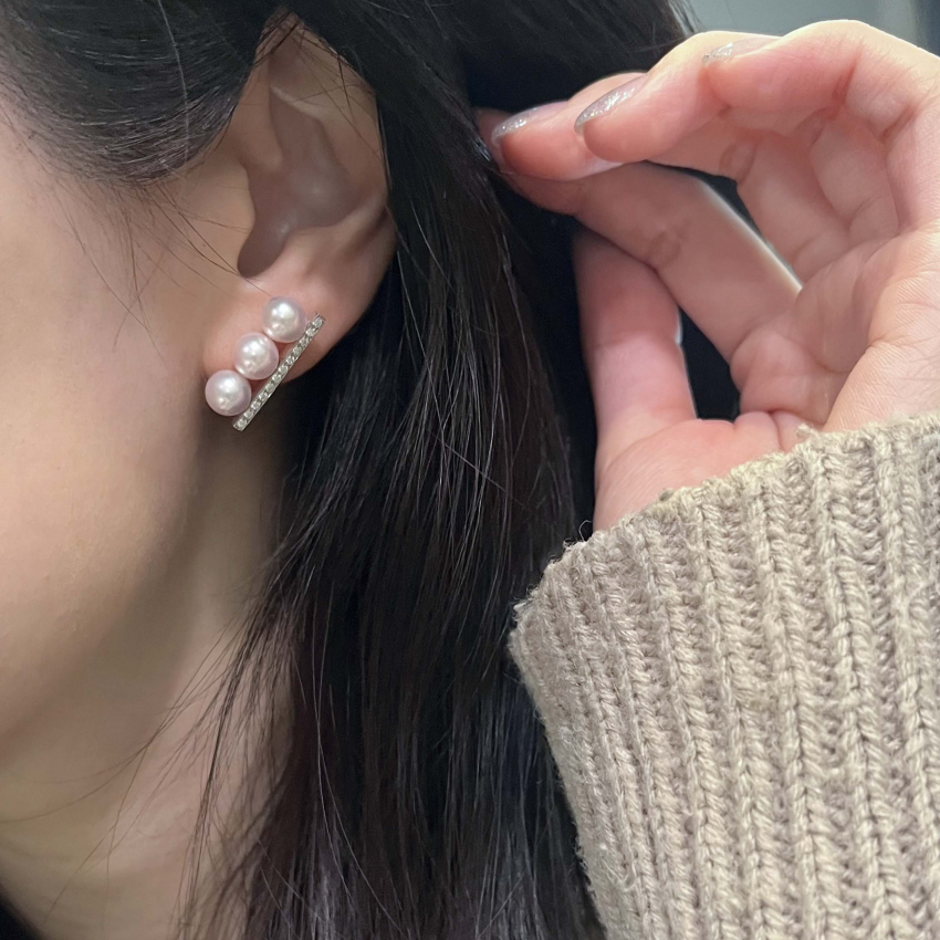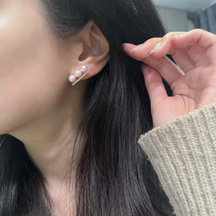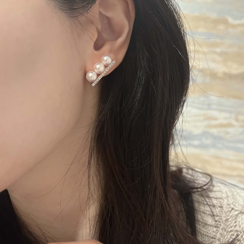 3Pパール ピアス/イヤリング ダイヤあり シルバー アコヤ真珠 ダイヤモンド パヴェ ピアス