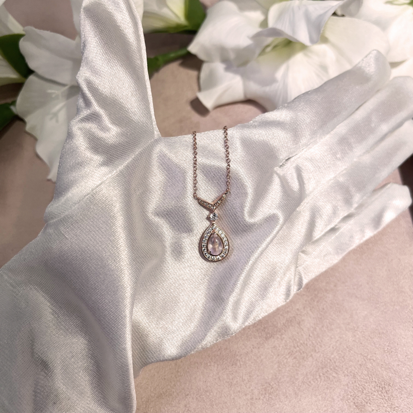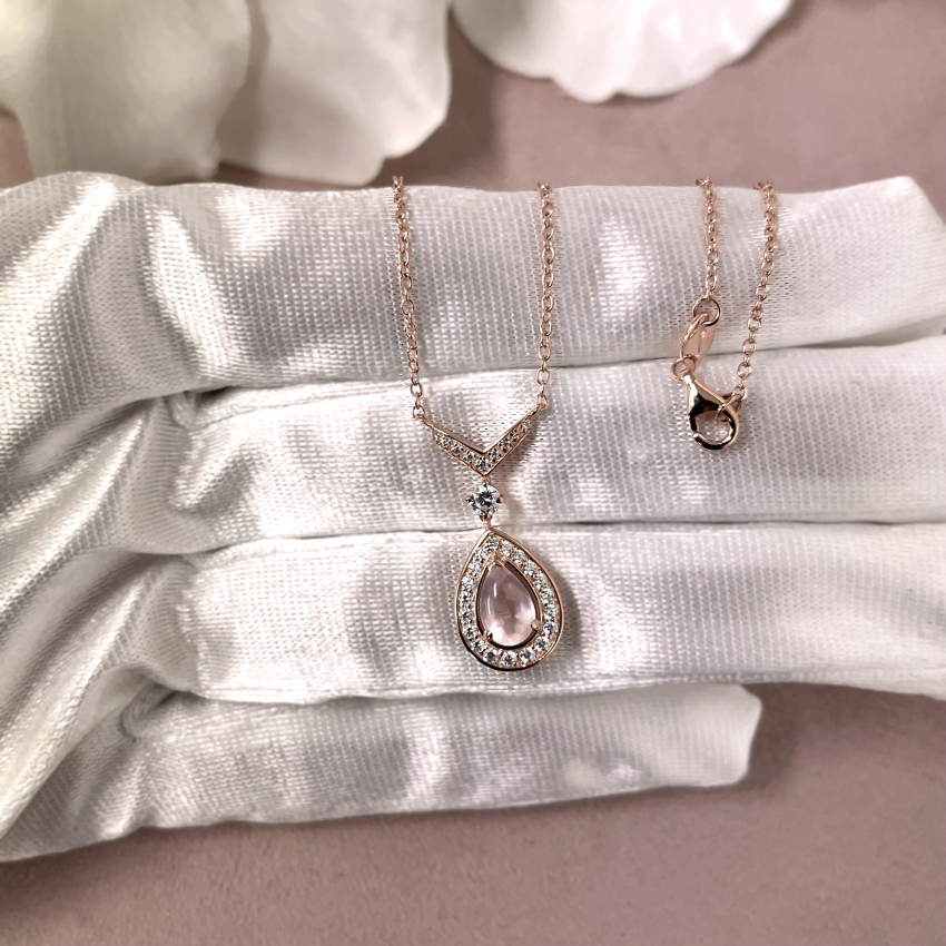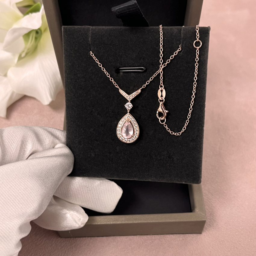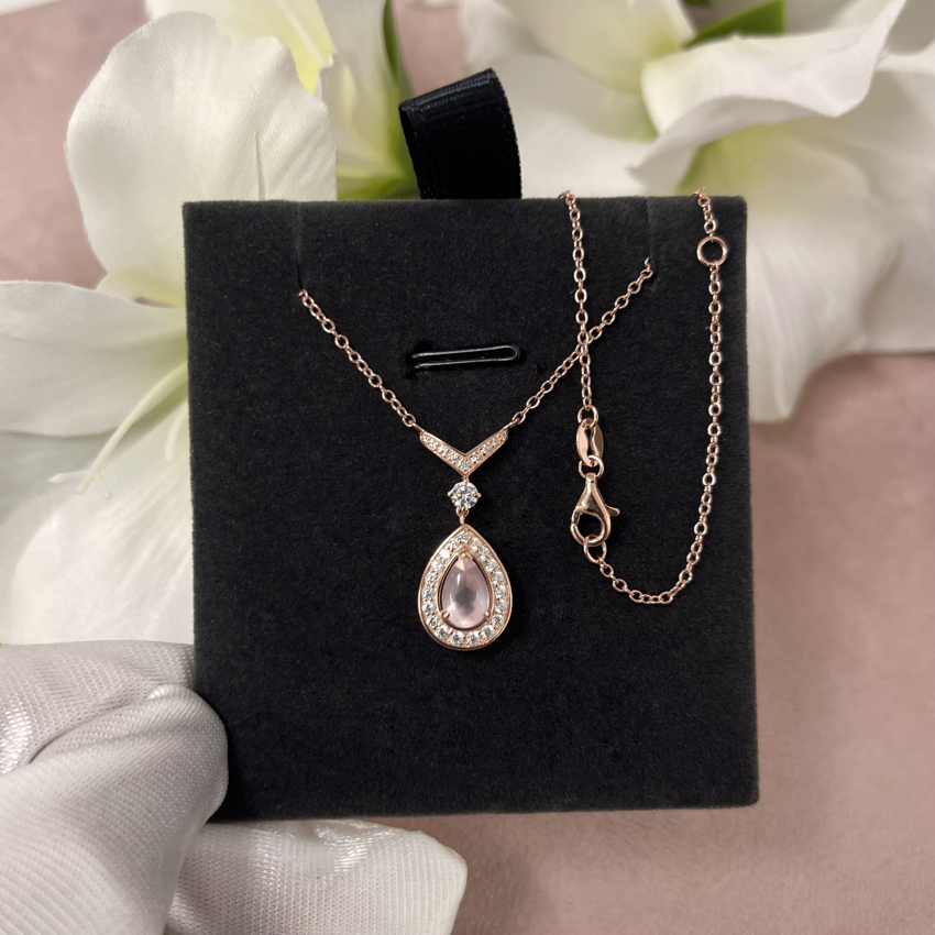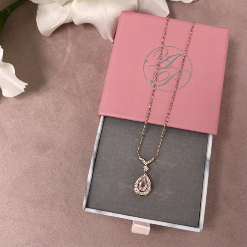 【WINTER SALE 20%OFF】エグレットスタッズネックレス 1ct 相当 ピンククォーツ×ピンクゴールドカラー
