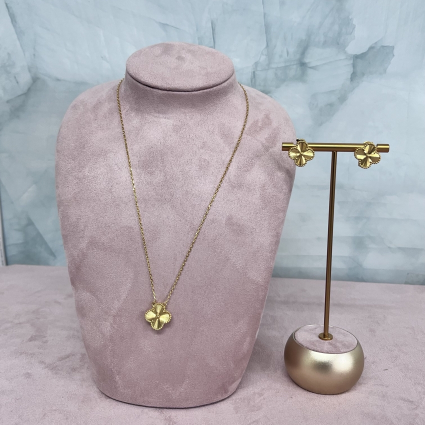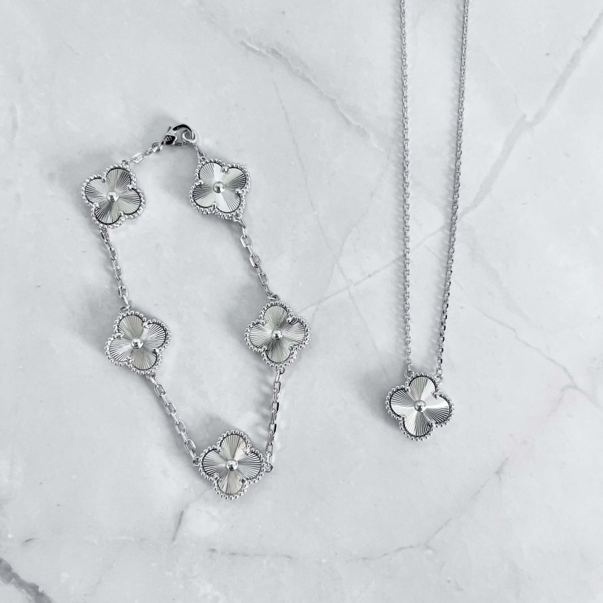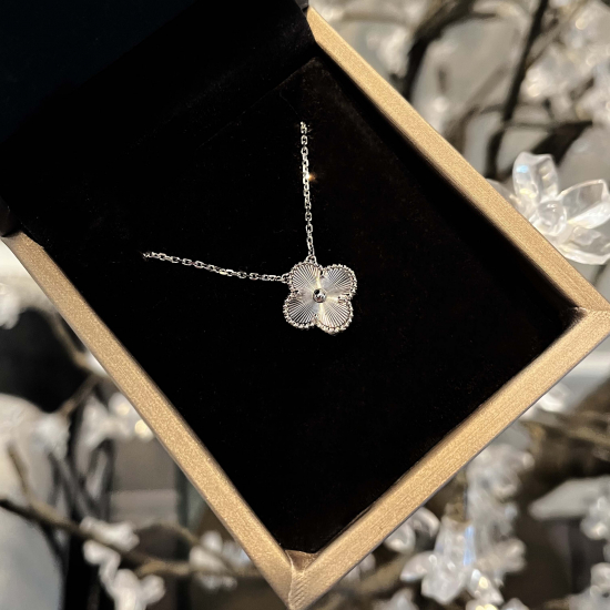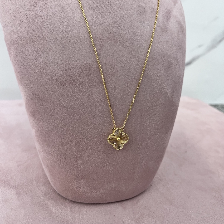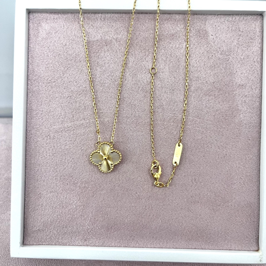 【18k:オーダー】ギヨシェ彫り ヴィンテージ・クローバー ネックレス ゴールドカラー/シルバー