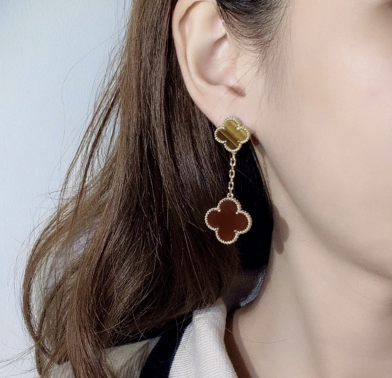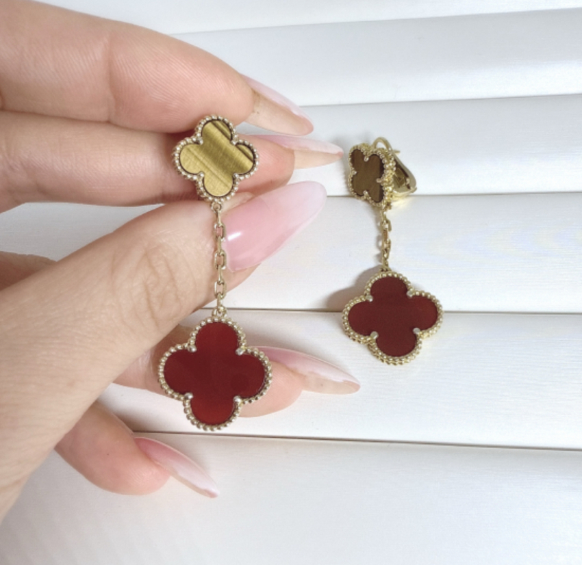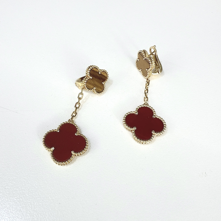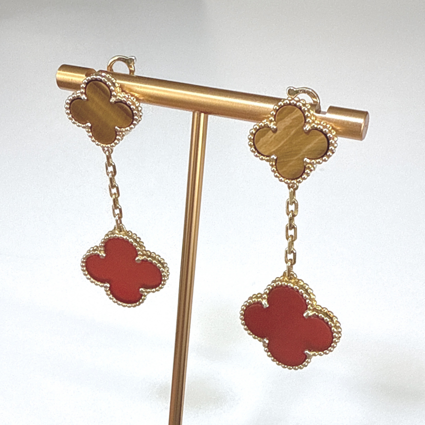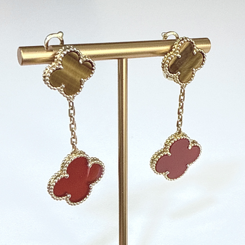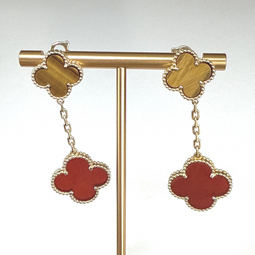 【アウトレット・サンプル】 定価54,900円破格→ クローバー2連タイプピアス 2連ピアス(タイガーズアイ・カーネリアン×ゴールドカラー)