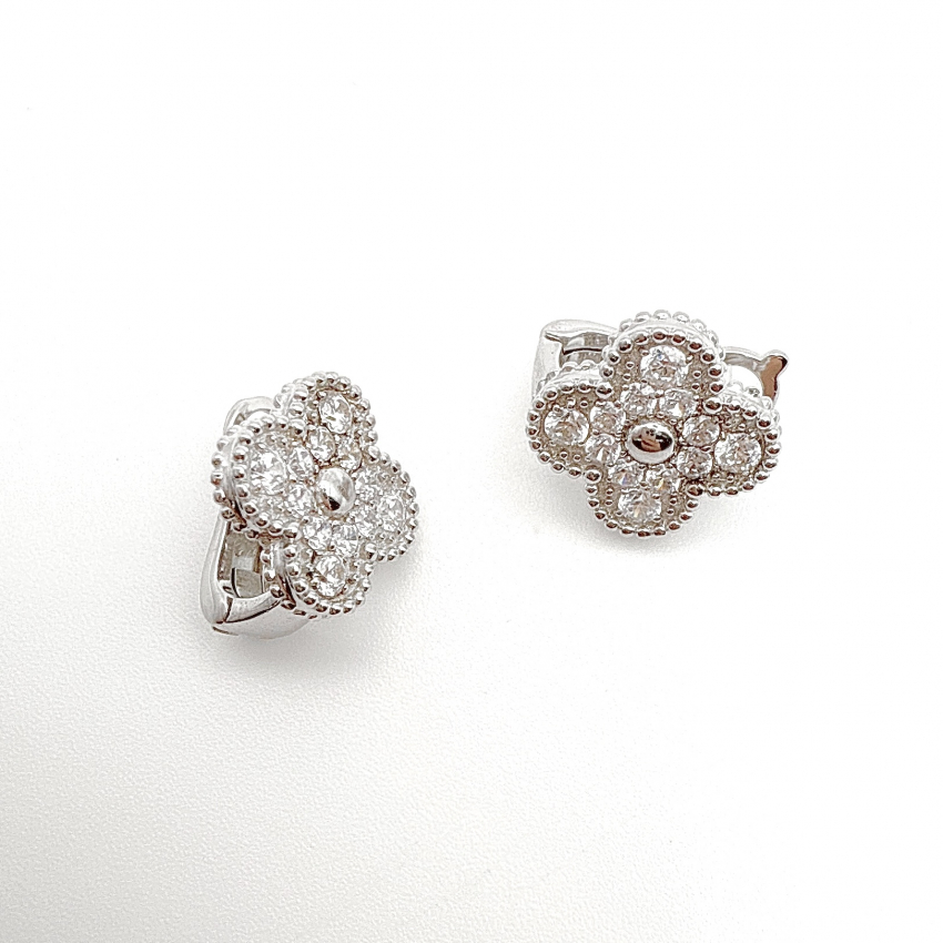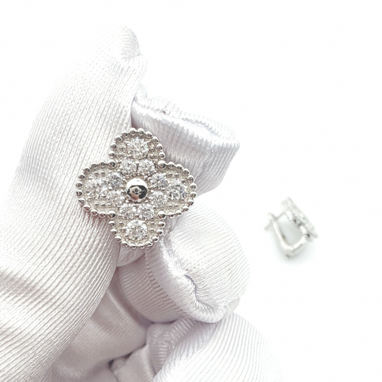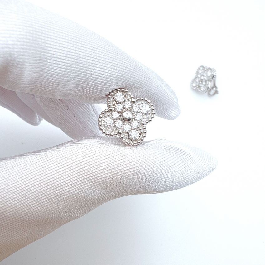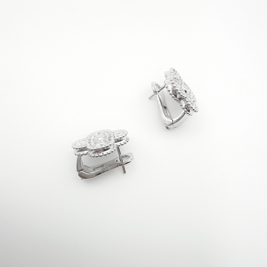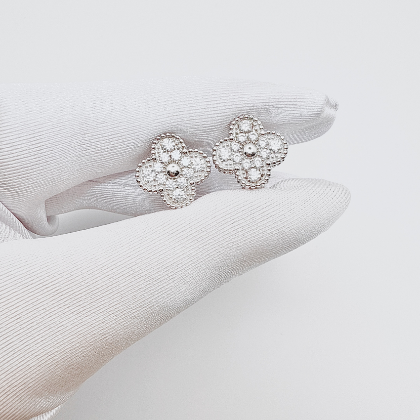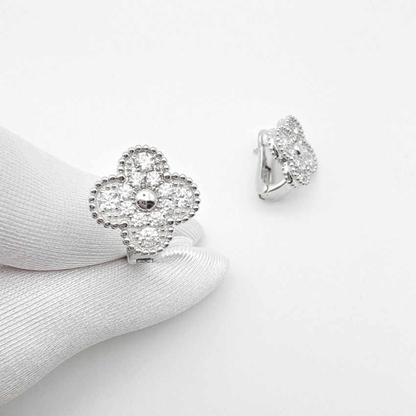【アウトレット品】定価 破格→ ヴィンテージクローバーピアス ダイヤパヴェタイプ オールダイヤ シルバーカラー