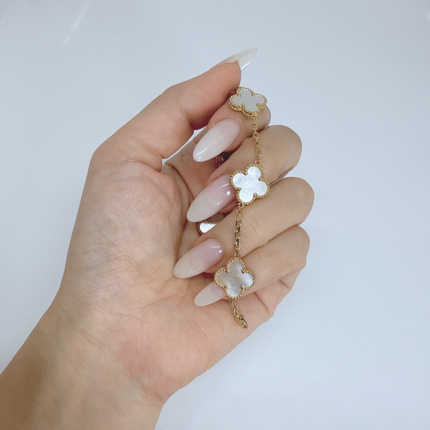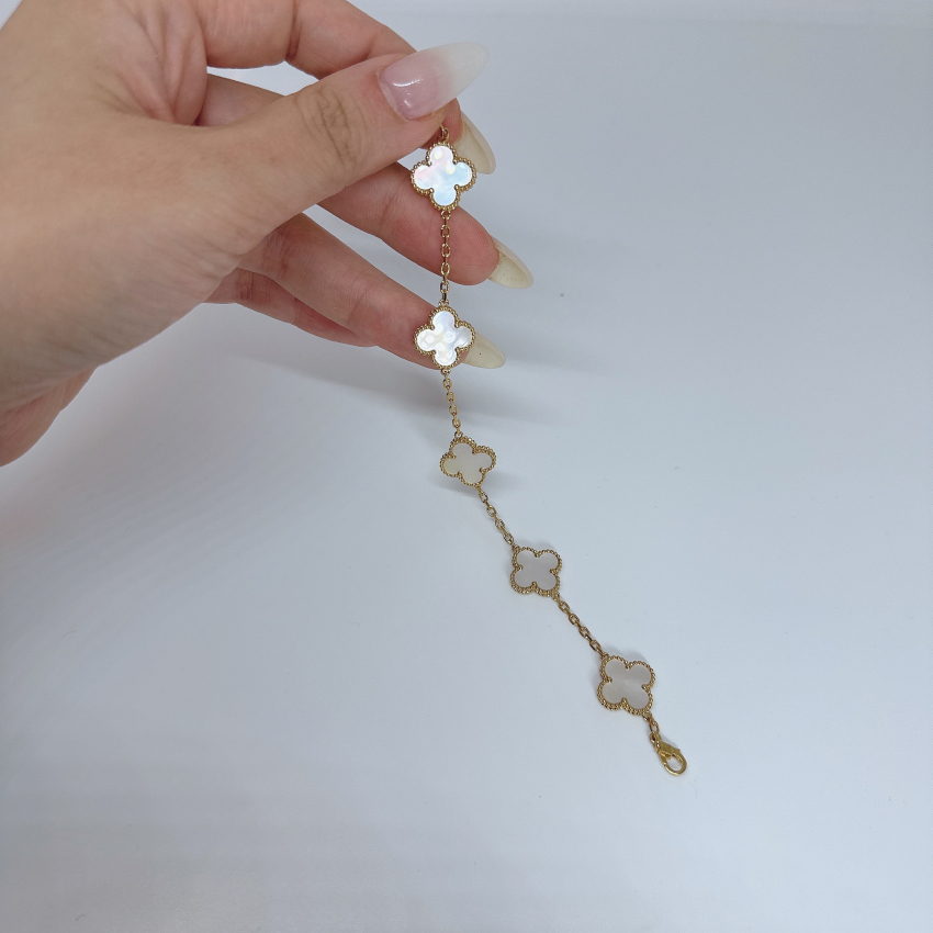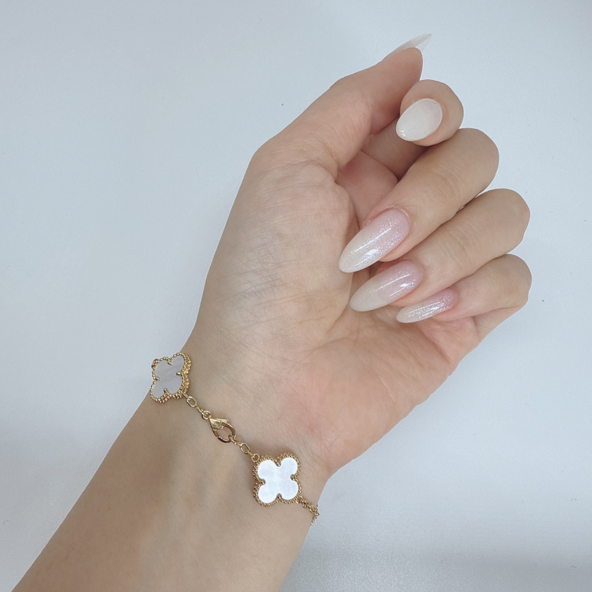 【アウトレット サンプル】新品未使用 定価59,900円破格→ ヴィンテージ・クローバー ブレスレット 白蝶貝×ゴールドカラー マザーオブパール 定番人気品