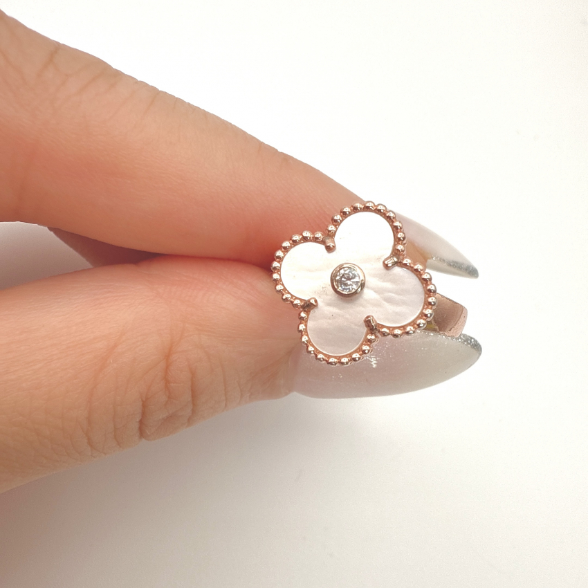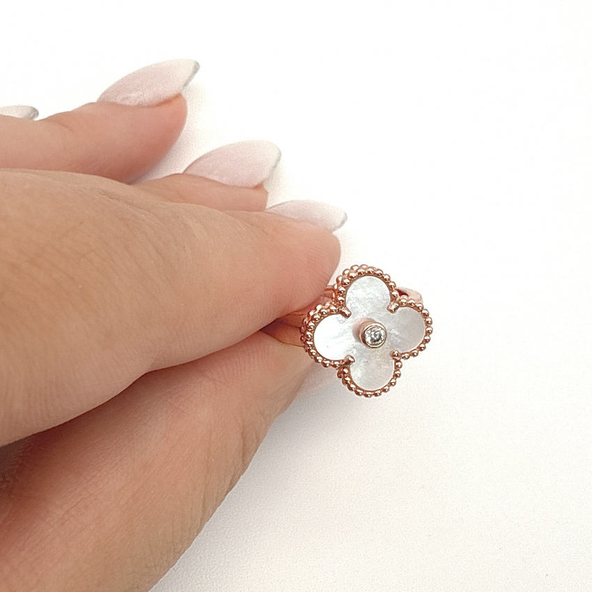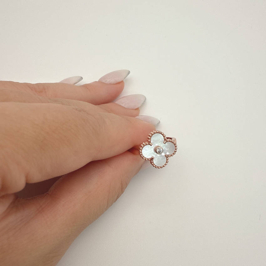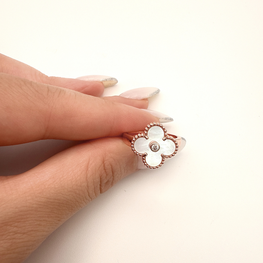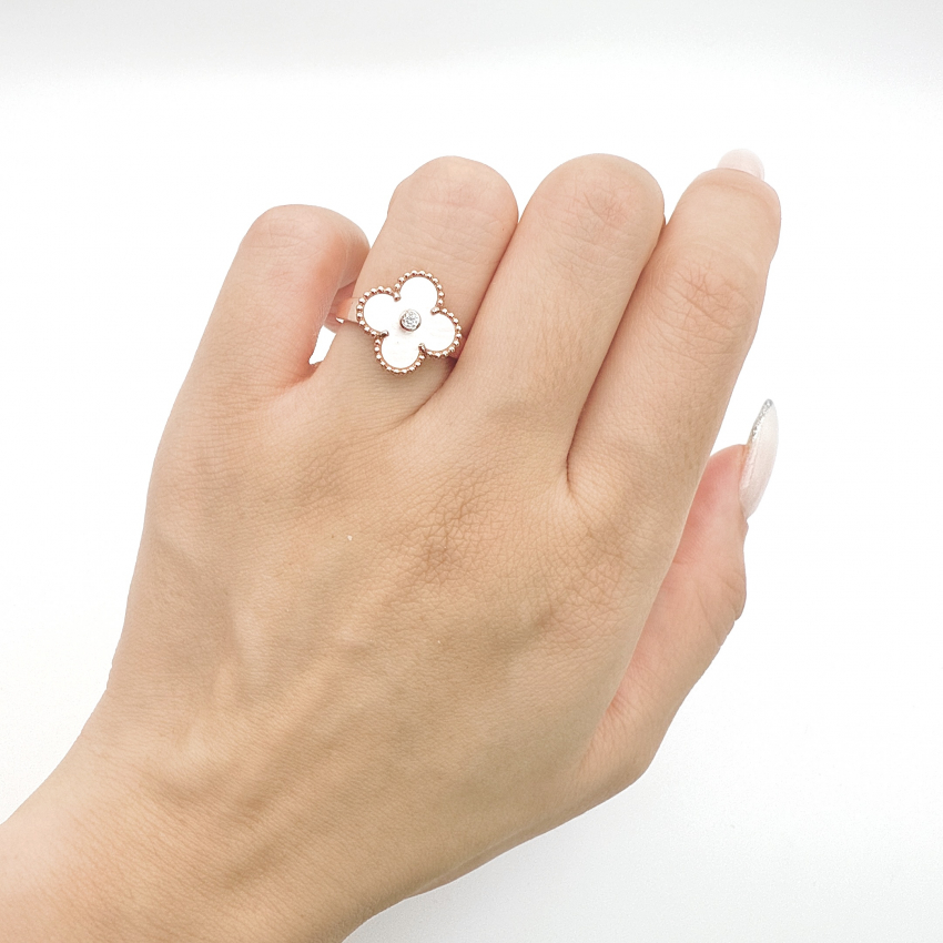 【サンプル アウトレット品】定価42,900円破格→ ヴィンテージ・クローバーリング 白蝶貝・ピンクゴールドカラー ※リング該当サイズはお問い合わせ下さい