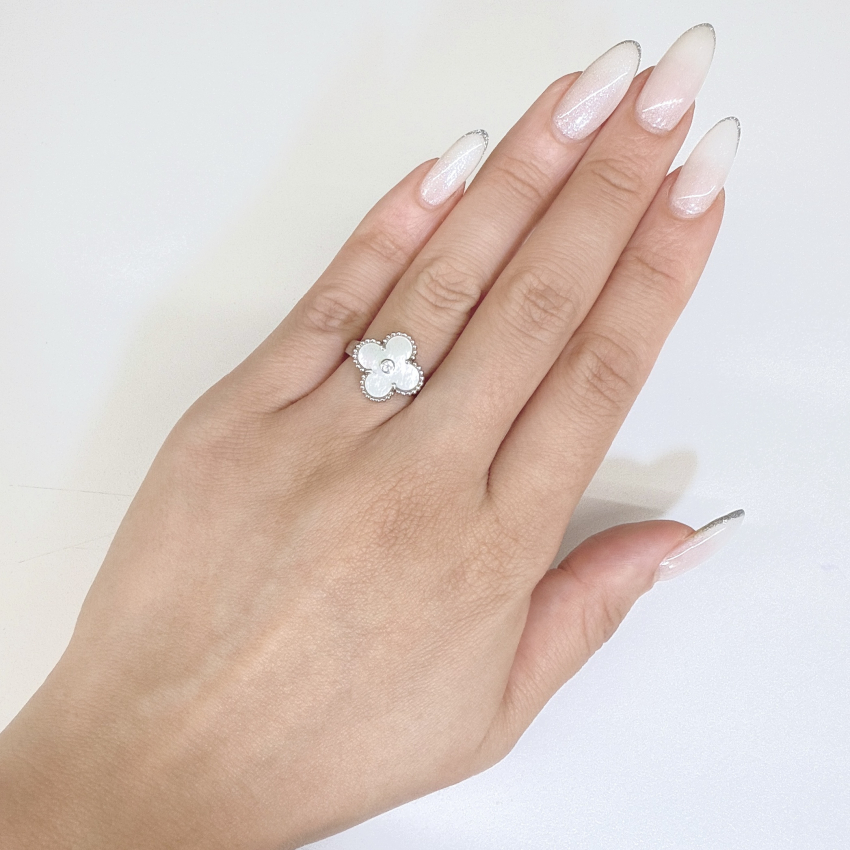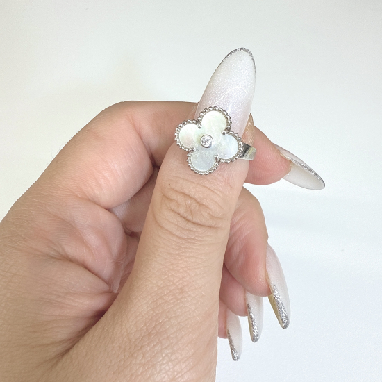 【サンプル アウトレット品】 クローバーリング 白蝶貝・シルバーカラー ※サイズ 5.6.7.10.13.14.15 備考欄に希望号数を記載下さい