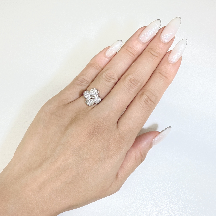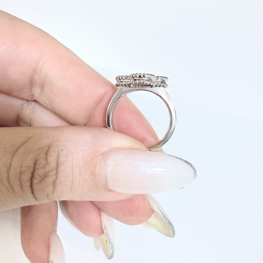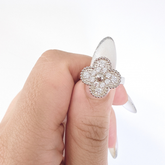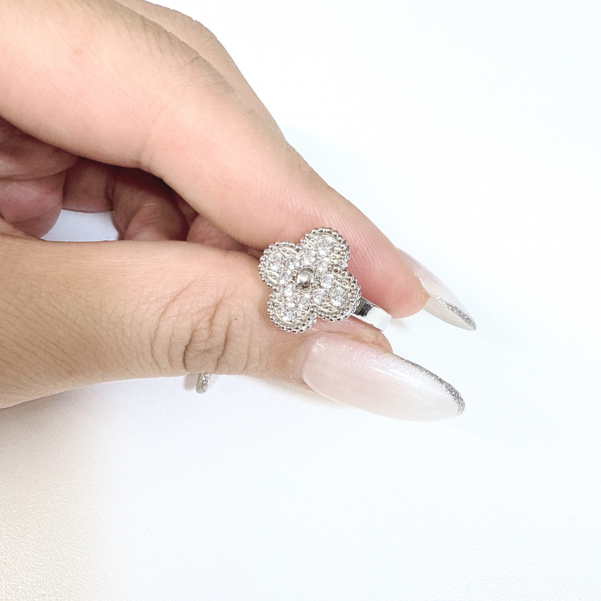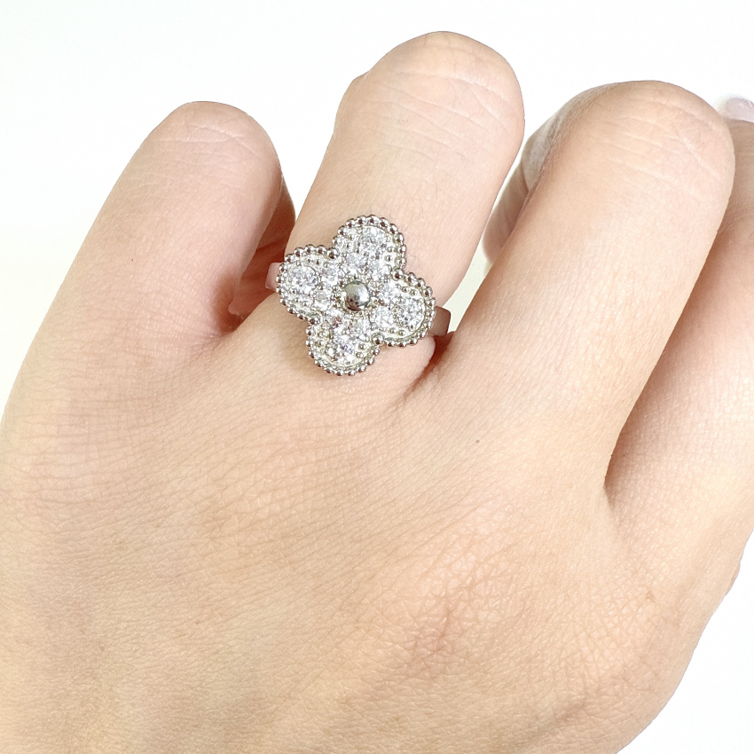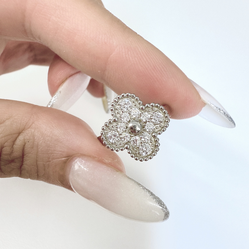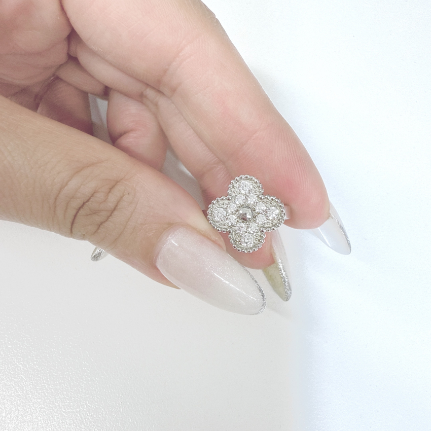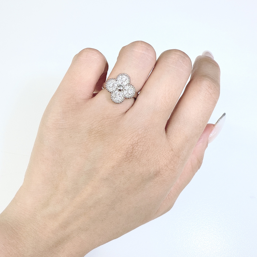 【サンプル アウトレット品】クローバーリング ダイヤパヴェ・シルバーカラー ※リングサイズ 7.8.10.11号 備考欄に希望号数を記載下さい