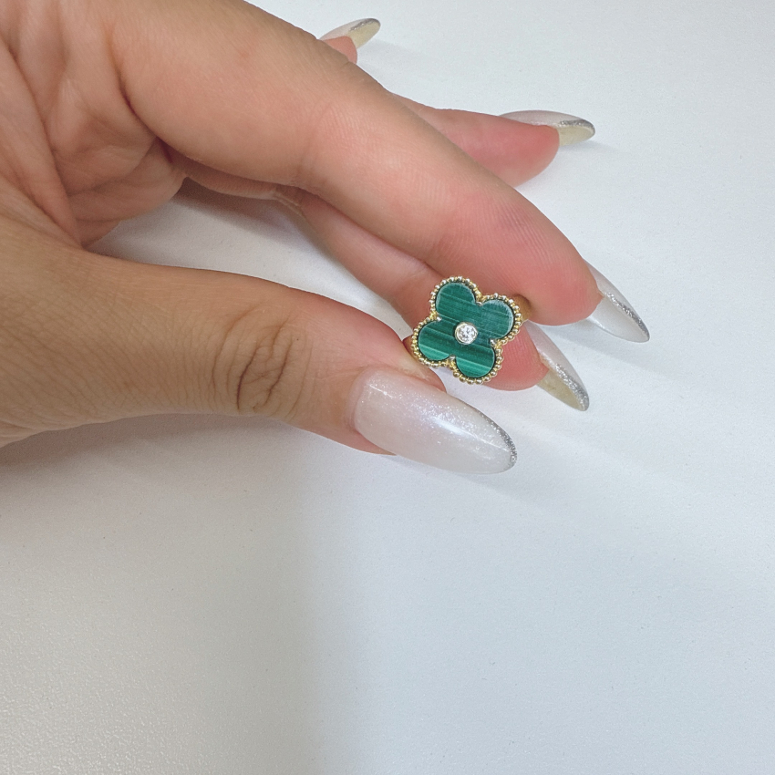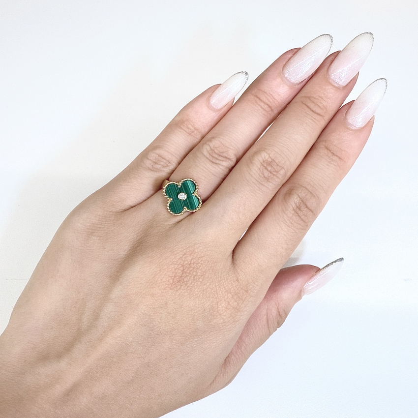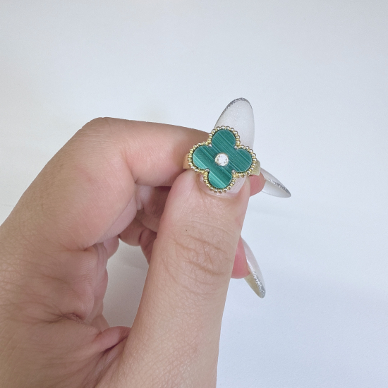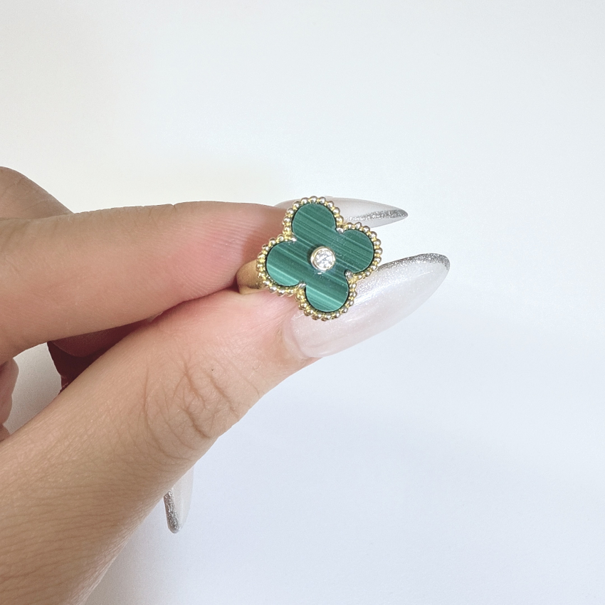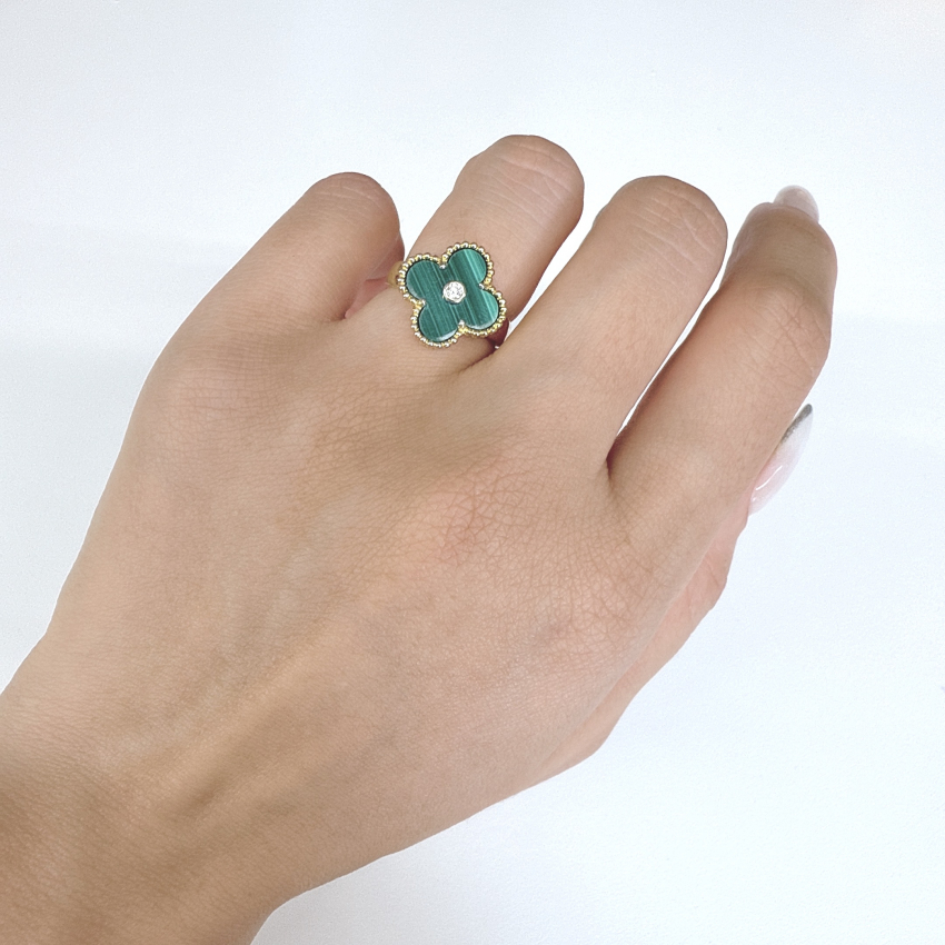 【サンプル アウトレット品】クローバーリング マラカイト・ゴールドカラー リングサイズ 7.8.9.10号 備考欄に希望号数を記載下さい