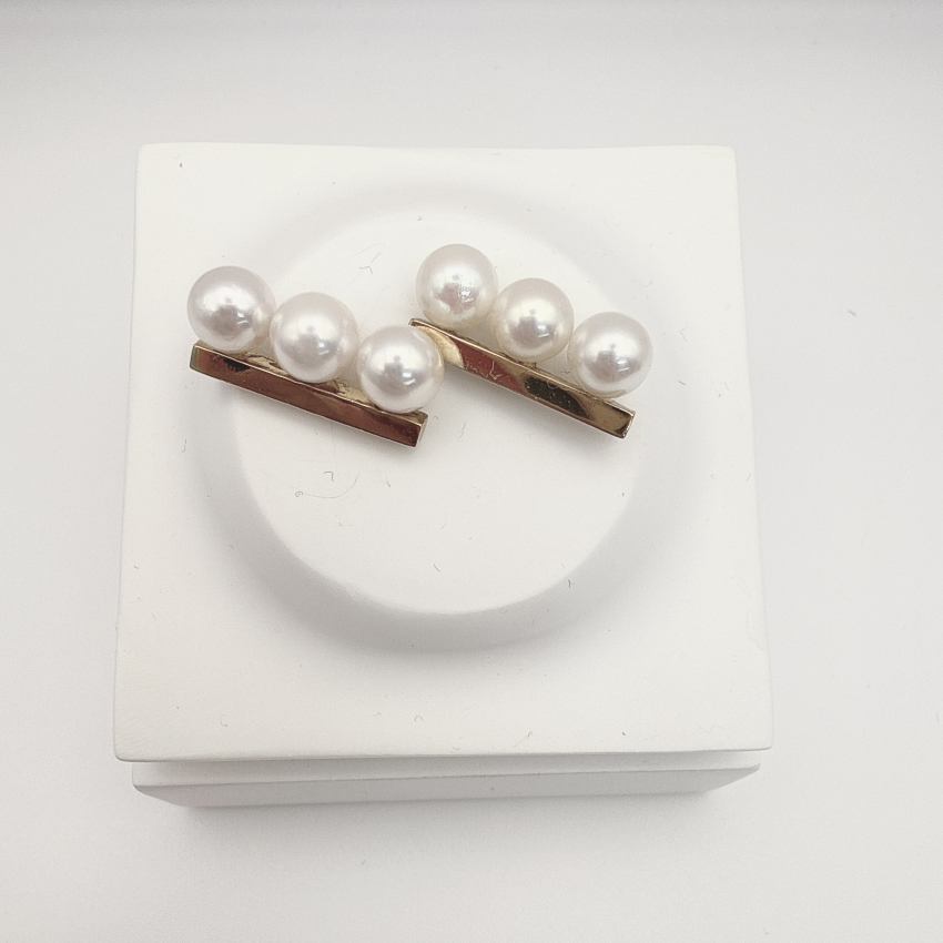 【オーダー】 3Pパール ピアス/イヤリング ダイヤなし ゴールドカラー アコヤ真珠 アコヤパール 花珠パール