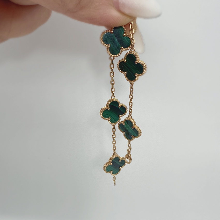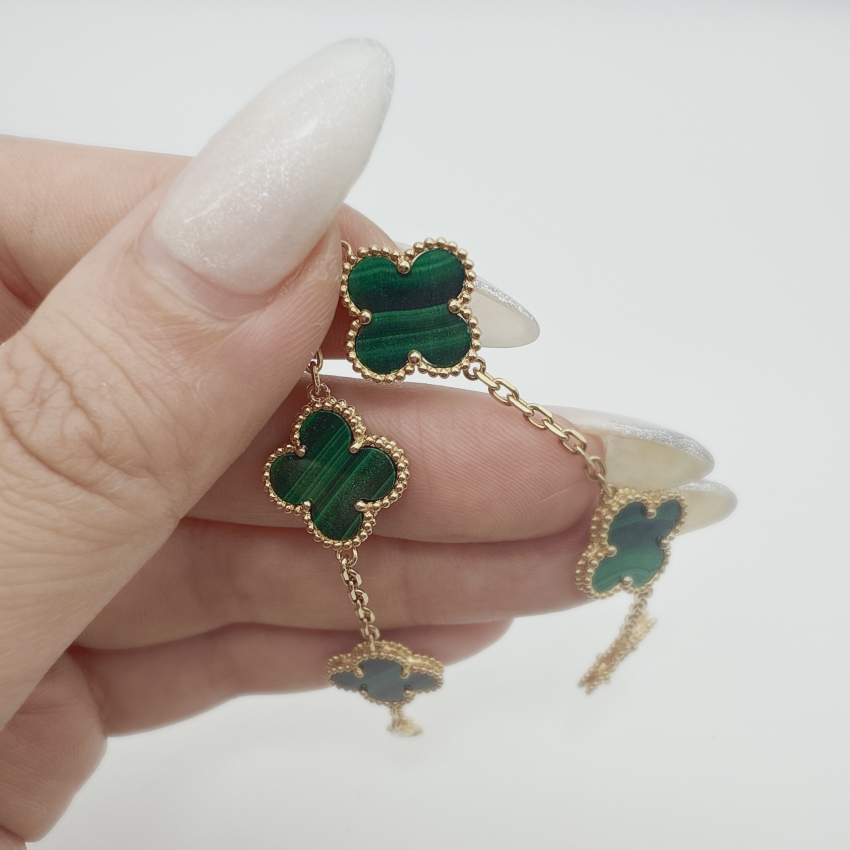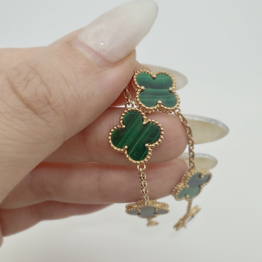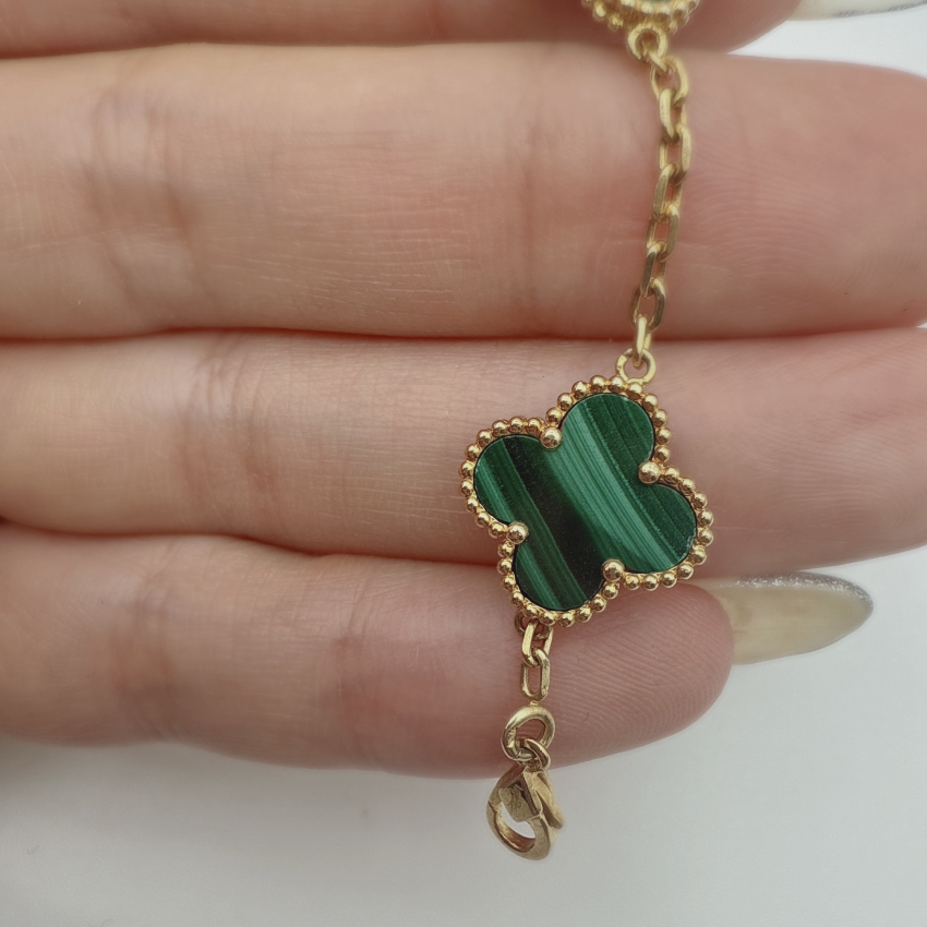 【アウトレット サンプル】 新品未使用品 定価 64,900円 破格→ 39,900円 クローバーブレスレット(マラカイト ゴールドカラー 天然マラカイト
