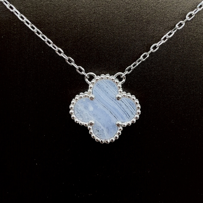 【アウトレット サンプル】 定価33,900円破格→ クローバー カルセドニー×シルバーカラー 天然石カルセドニー