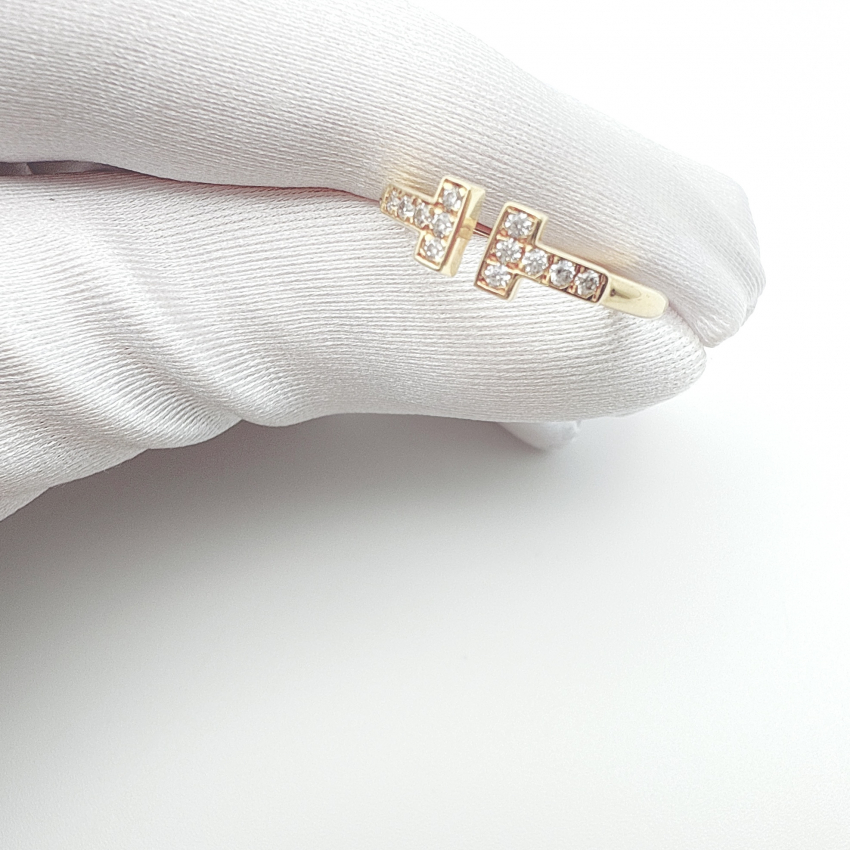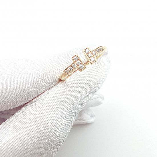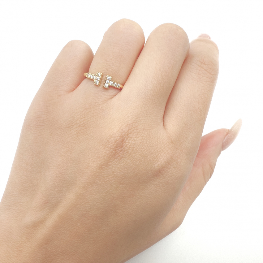 【アウトレット サンプル未使用品】  定価36,900円→破格 ダブルTリング シルバーカラー スマイルリング 人工ダイヤモンド ※日本サイズ9から10号相当