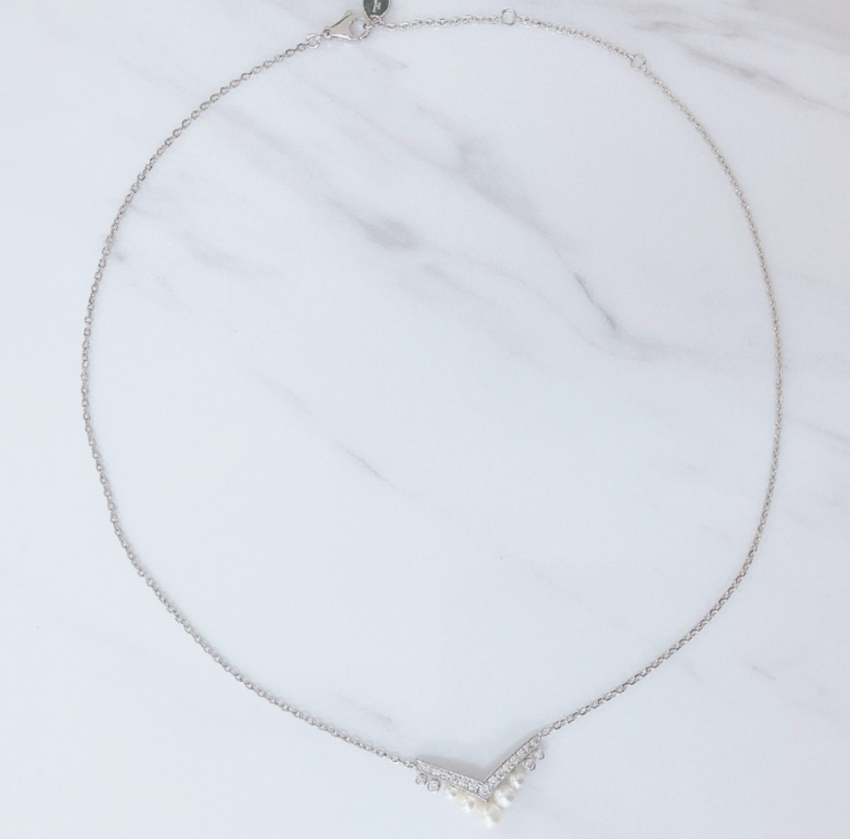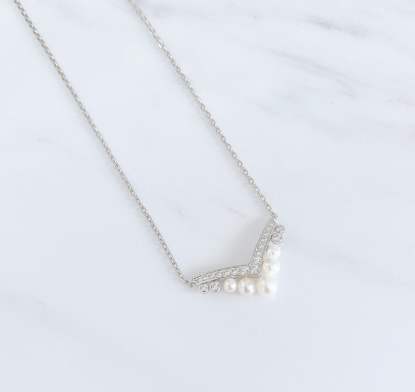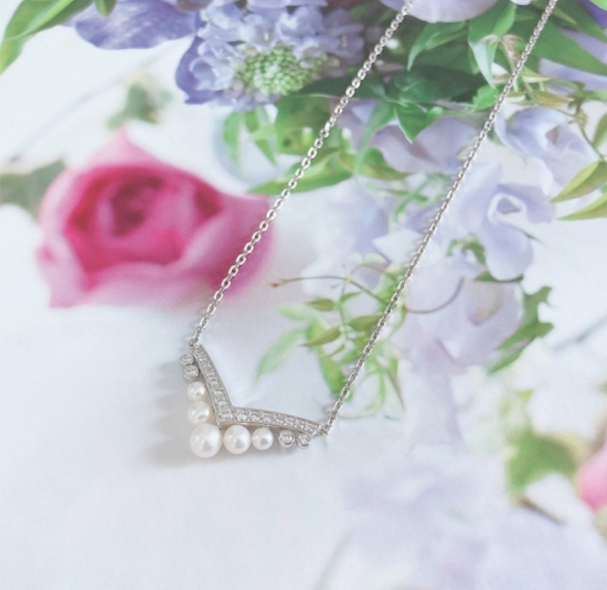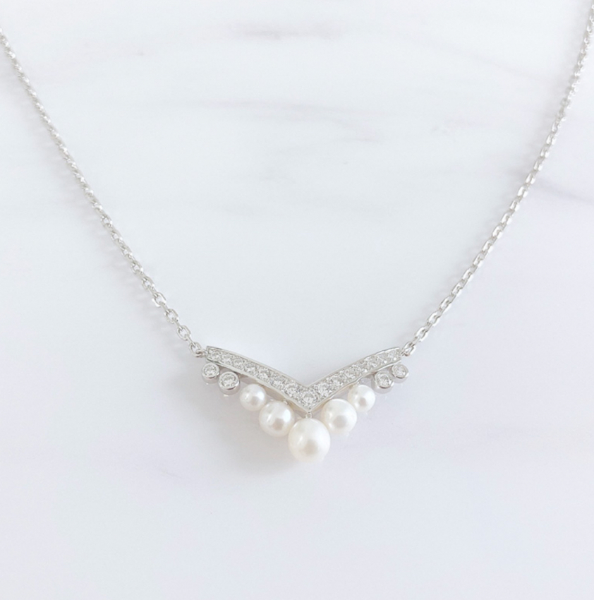 V字ラインパールネックレス エグレット  アコヤパール